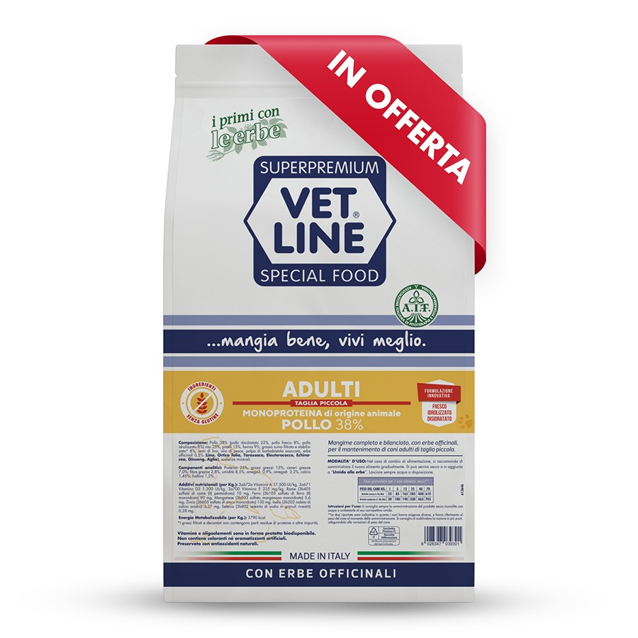 La formula Adulti Cervo Taglia Piccola è un mangime completo e bilanciato, con erbe officinali, per il mantenimento di cani adulti di taglia piccola. Integrata con sette erbe officinali titolate aiuta a prevenire parassiti, infezioni batteriche e virali, disturbi digestivi e innalzano le difese immunitarie. E' stato seguito anche in questa formula il concetto di alimentazione olistica di tutta la linea Vet Line: Una sola fonte proteica "Cervo".