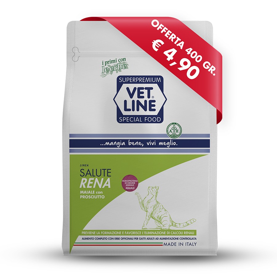 Previene la formazione e favorisce l'eliminazione di calcoli renali. Alimento completo con erbe officinali per gatti adulti ad alimentazione controllata.